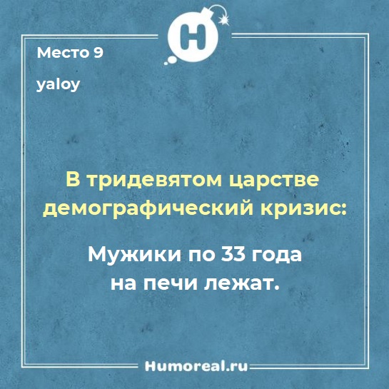 9 место у двух авторов шуток: Ольга yaloy со сказочно-демографической историей: