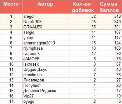 348 баллов и 1 место — aregor!
